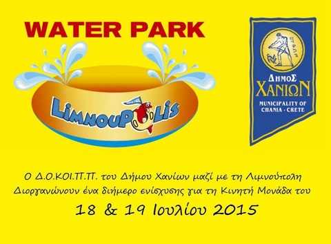 Μια ξέγνοιαστη και ευχάριστη απόδραση διοργανώνει για το Σάββατο 18 και την Κυριακή 19 Ιουλίου 2015 ο Δημοτικός Οργανισμός Κοινωνικής Πολιτικής και Παιδείας (Δ.Ο.ΚΟΙ.Π.Π.) του Δήμου Χανίων στο υδροψυχαγωγικό Πάρκο “Λιμνούπολη”, με στόχο την προμήθεια ιατρικού εξοπλισμού για την Κινητή του Μονάδα Ενημέρωσης.