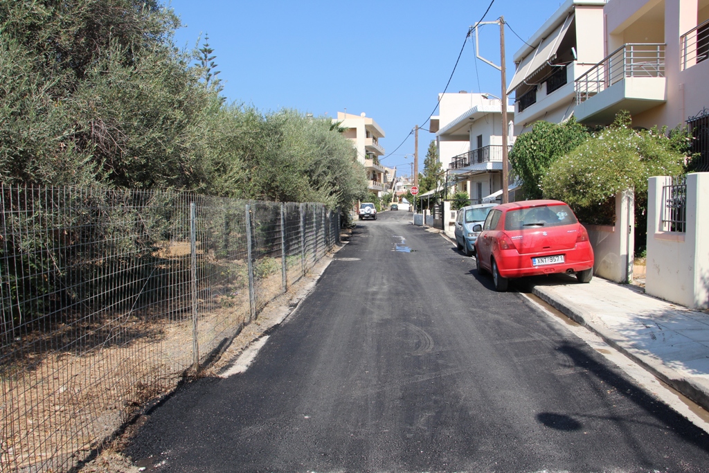 Στην οδό Επισκόπου Νικ. Συντζανάκη έχουν ήδη πραγματοποιηθεί οι εργασίες ανακατασκευής του παλαιού ασφαλτοτάπητα, ενώ όπου είναι δυνατόν γίνεται η εφαρμογή του εγκεκριμένου ρυμοτομικού σχεδίου με την κατασκευή των κρασπεδορείθρων – πεζοδρομίων.