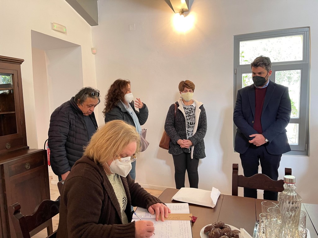Στο πατρικό σπίτι των Θεοδωράκηδων στον Γαλατά, ο Δήμαρχος Χανίων, Π. Σημανδηράκης και η Πρέσβης της Δημοκρατίας της Κούβας, Zelmys Maria Dominguez Cortina