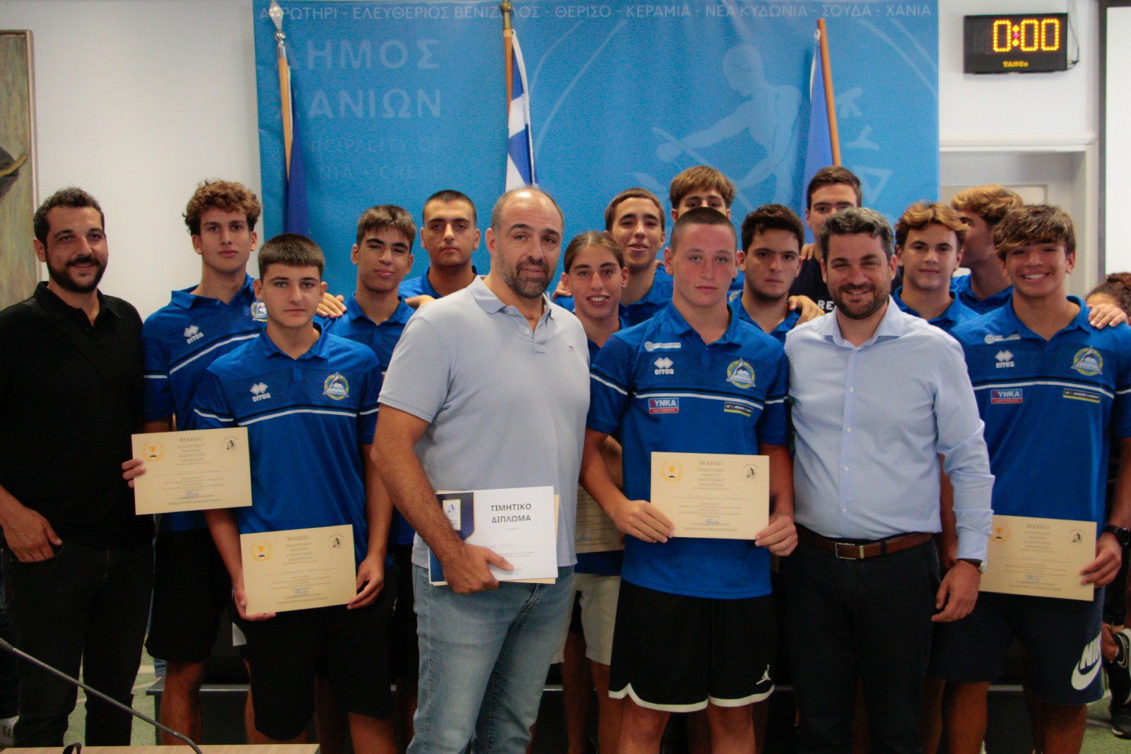 Μαζί με τους Αντιδημάρχους, Αθλητισμού Στέλιο Μιχαηλάκη, Παιδείας, Αντώνη Βαρδάκη, Οικονομικών, Τάσο Αλόγλου και Τεχνικών Υπηρεσίων, Μιχάλη Καλογριδάκη αλλά και τον Πρόεδρο της Σχολικής Επιτροπής Πρωτοβάθμιας Εκπαίδευσης Δήμου Χανίων και επί χρόνια ομοσπονδιακό προπονητή στην υδατοσφαίριση Νίκο Βλαζάκη, απονεμήθηκαν τιμητικές πλακέτες και έπαινοι στους αθλητές και τις αθλήτριες.