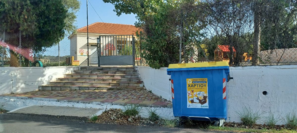 «Ολοκληρώνεται η τοποθέτηση εξωτερικών μεγάλων μπλε κάδων με κίτρινο καπάκι σε 106 σημεία στα σχολικά συγκροτήματα και τις σχολικές μονάδες, ενώ προχωρά και η διανομή εσωτερικών κάδων στα δημόσια κτίρια. Έχουν ενημερωθεί με σχετικές επιστολές οι φορείς, ενώ στους κάδους υπάρχουν και σχετικές οδηγίες», τόνισε η κα. Κατσιαγάννη.