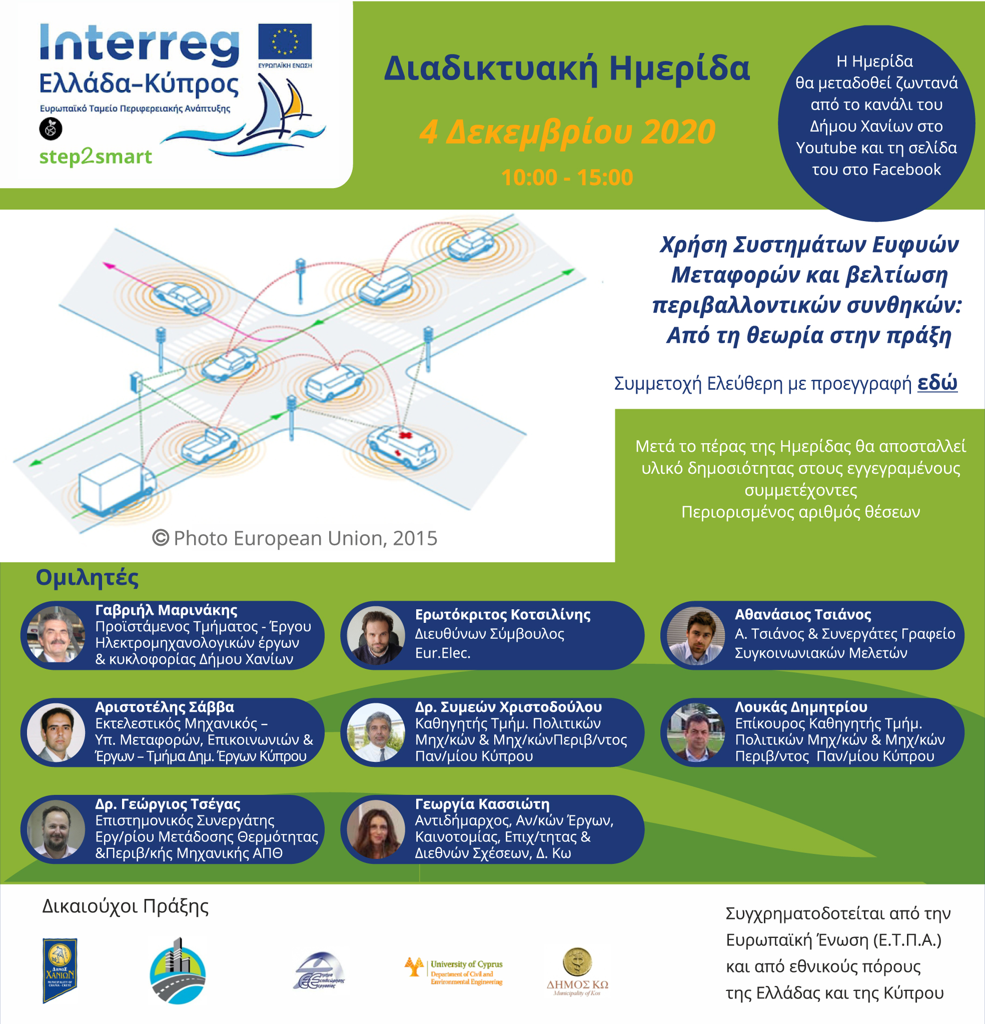 25/11/2020, Κάλεσμα συμμετοχής στη διαδικτυακή ημερίδα του Δήμου Χανίων, με θέμα: «Χρήση Συστημάτων Ευφυών Μεταφορών και Βελτίωση Περιβαλλοντικών Συνθηκών. Από τη Θεωρία, στην Πράξη»