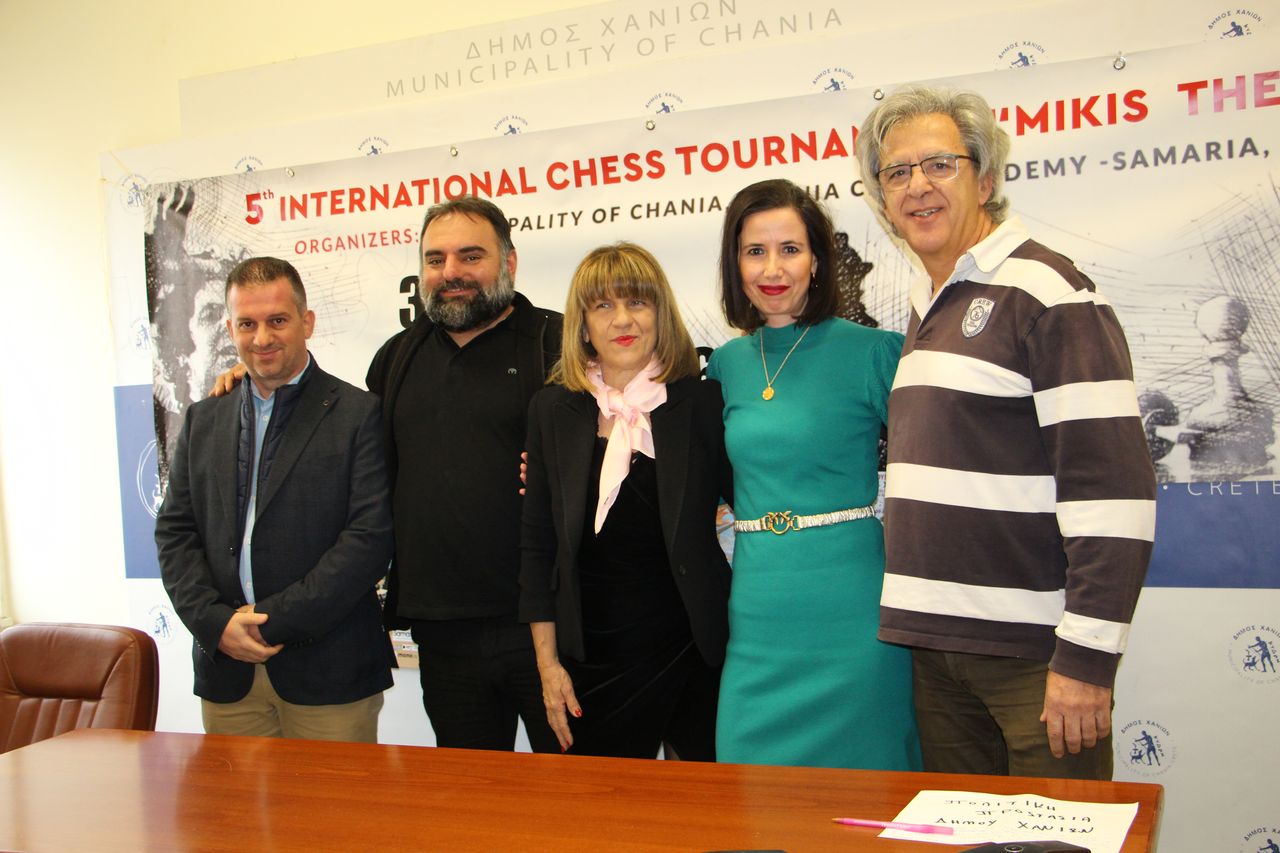 Τη συνέντευξη Τύπου παραχώρησαν ο Αντιδήμαρχος Τουρισμού, Νεκτάριος Ψαρουδάκης, η Χρύσα Χαριτάκη, εκπροσωπώντας την Περιφέρεια Κρήτης, ο πρόεδρος της Σκακιστικής Ακαδημίας Χανίων, Γιώργος Βολάνης, και η Γενική Γραμματέας του Αθλητικού Πνευματικού Ομίλου «Μίκης Θεοδωράκης», Ειρήνη Μπροκαλάκη.