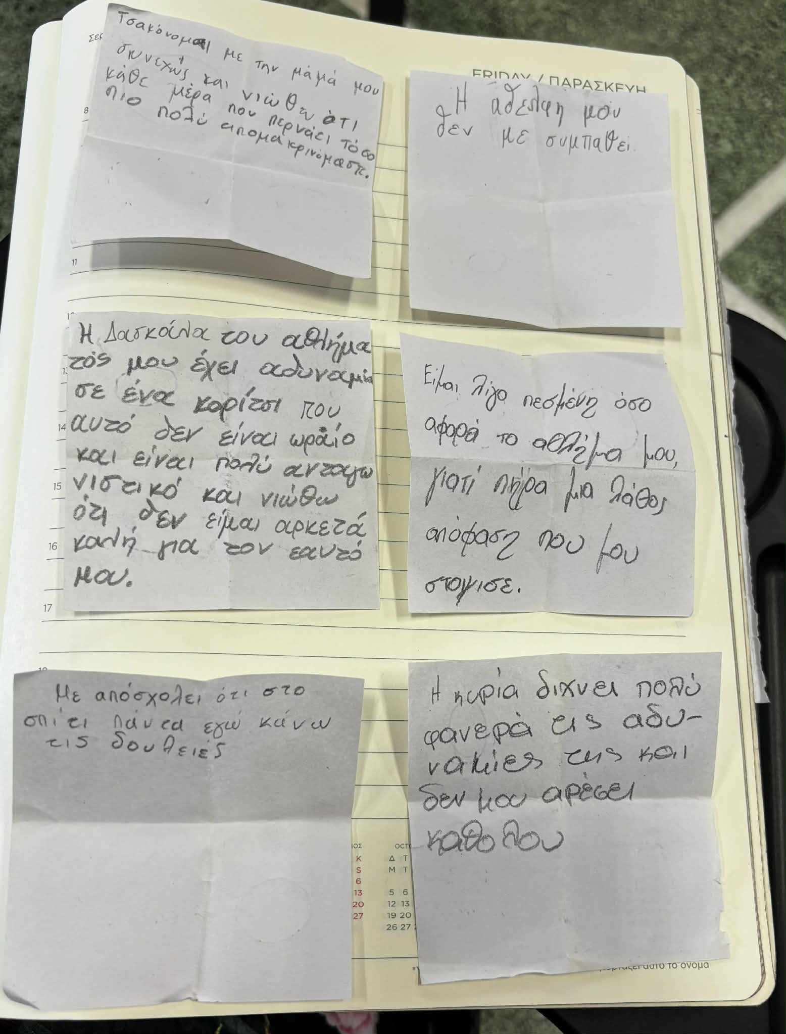Κάποια από τα παιδιά επέλεξαν να κρατήσουν τις σκέψεις τους ιδιωτικές. Άλλα, όμως, θέλησαν να τις μοιραστούν. Στο τέλος της διαδρομής, οι καταγραφές αυτές διαβάστηκαν ανώνυμα, δημιουργώντας έναν κοινό χώρο ακρόασης και αναγνώρισης.