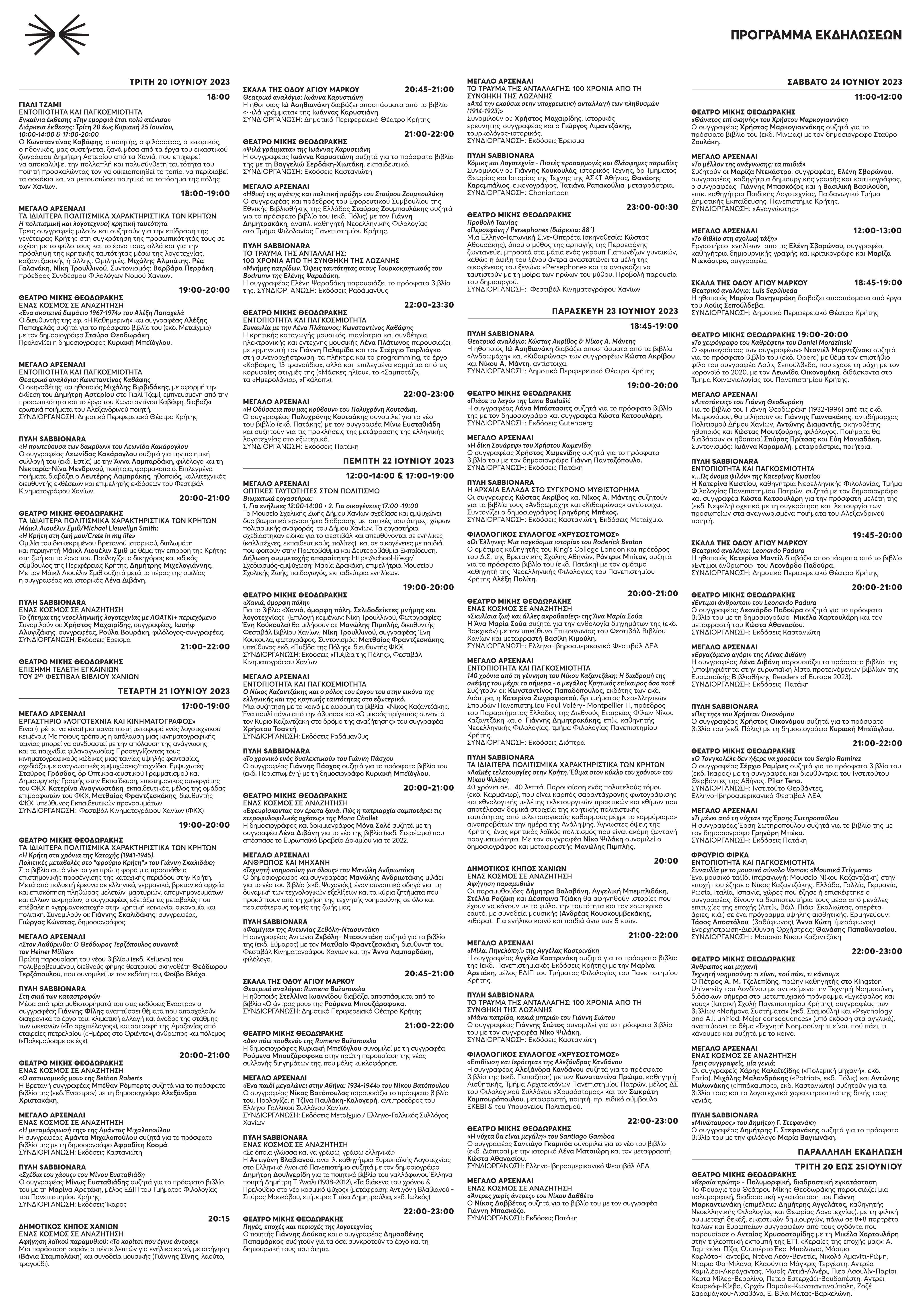 Αναλυτικό Πρόγραμμα Εκδηλώσεων – 2ο Φεστιβάλ Βιβλίου Χανίων